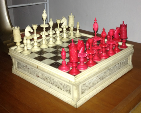 Swiss Ivory and Bone Miniature Chess Set and Board |